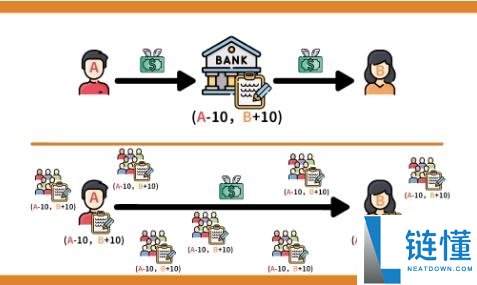 中心化就是一个团体、系统、体系具有控管整体的中心掌权人,举例来说,国家的中心是政府,而交易体系的中心是银行,因为所有的金融服务都是由银行提供的,也就是说,银行那有一个记帐小本本记录着我们所有的金融行为,所有交易、资产都是银行说了算,所以当记帐权由银行转移至我们每个人时,就像共同拥有一本公共帐本,「分散式帐本技术」的名称由此而来。