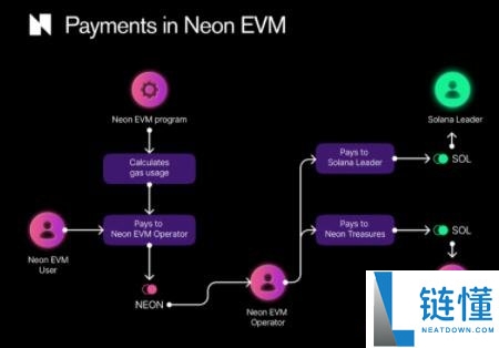 如同使用其他区块链一样需要支付燃料费,而使用 Neon 主网需要支付自家代币 NEON 作为燃料费用。当 Proxy Operator 收到用户的 NEON 代币后,会将交易资讯提交给 Solana 主网的验证者,并支付 SOL 作为上链的燃料费用,另外还会提交一部分的费用给 Neon EVM 金库。