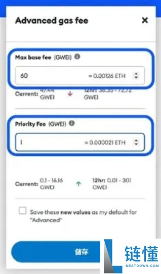 点进来后会看到Max base fee 和Priority Fee 这两个名词。自以太坊完成伦敦升级(EIP-1559)后,Gas Fee 的计算方式略微不同。