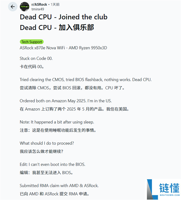 2月3日消息,据Wccftech收集的数据,仅一天内就发生了五起在华擎主板上锐龙9000 CPU故障案例,受害者涵盖从6核到16核的多款热门型号。最新