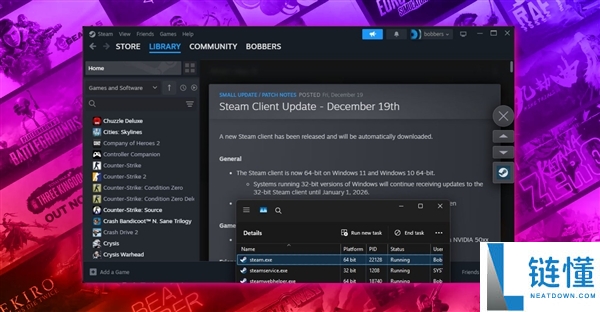 12月21日消息,Valve官方宣布,Steam客户端将全面转向64位,而32位版本将在2026年1月1日起被放弃,不再提供任何更新。良心的是,64位版Stea