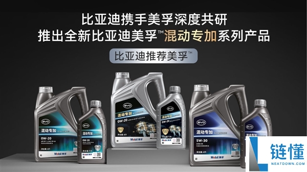 12月23日消息,比亚迪今日官宣与美孚联合推出全球首款专为插电式混合动力(PHEV)车型打造的比亚迪美孚™混动专加系列发动机油,精准