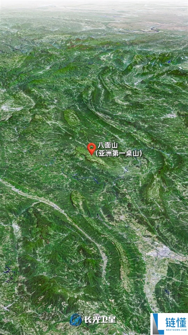 12月22日消息,通过卫星视角俯瞰湖南省龙山县,会发现一片地理奇观,绝对颠覆你的想象!在在群山起伏的褶皱中,一座巨大的山体如同被精准切