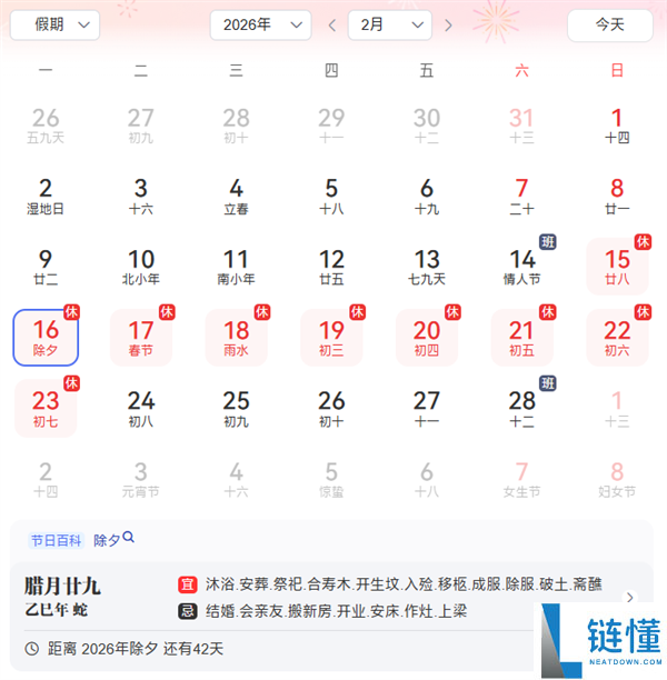 1月5日消息,虽然元旦假期刚过,但下一个假期已经上路,很快就要到了,而且是9天超长假。据报道,2026年春节假期放假共九天,2月15日(农历