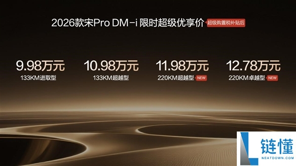 日消息,日前,比亚迪2026款宋ProDM-i220km长续航版本正式上市,共有两款车型,官方指导价分别为12 28万、13 08万元,叠加3000元的限
