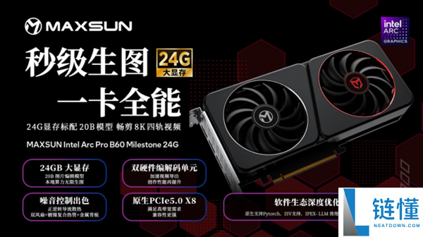 1月13日消息,铭瑄Intel Arc Pro B60系列显卡正式开售,上线MAXSUN Intel Arc Pro B60 Milestone 24G和MAXSUN Intel Arc Pro