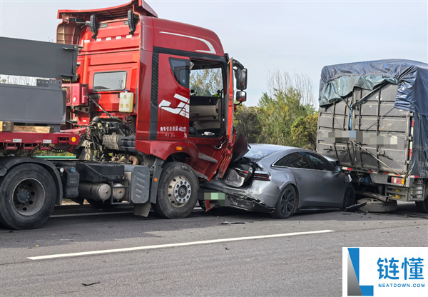 智界S7遭大货车夹心撞 车主:人没事 已换新R7