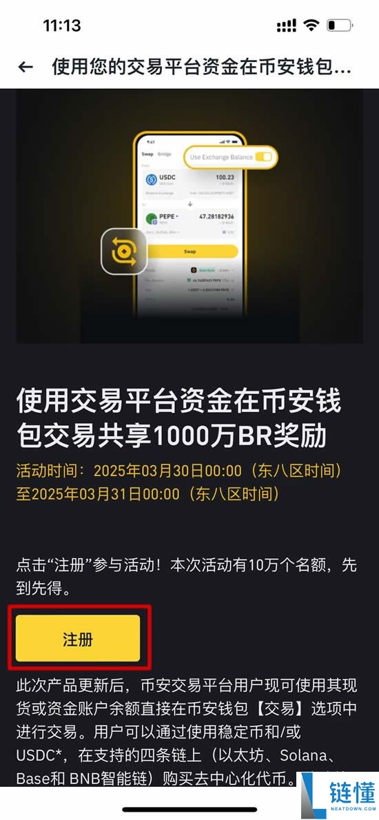 注意:活动是东八区时间:30号0点再兑换币安钱包团队推出用CEX资金在DEX交易功能,币安钱包将推出Bedrock(BR)代币星期日空投活动!凡在活