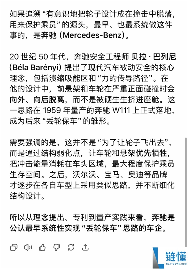 1月5日消息,有博主日前发文称,小米车轮子撞掉是丢轮保车,这就是一个在车辆安全设计的一个普遍思路,没啥好喷的。如果追溯源头的话,奔驰