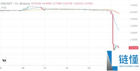 根据币安交易数据,现实世界资产(RWA)项目MANTRA 生态系的原生代币OM 在4 月13 日出现崩盘,价格在短短四小时内从超过6 美元暴跌至0