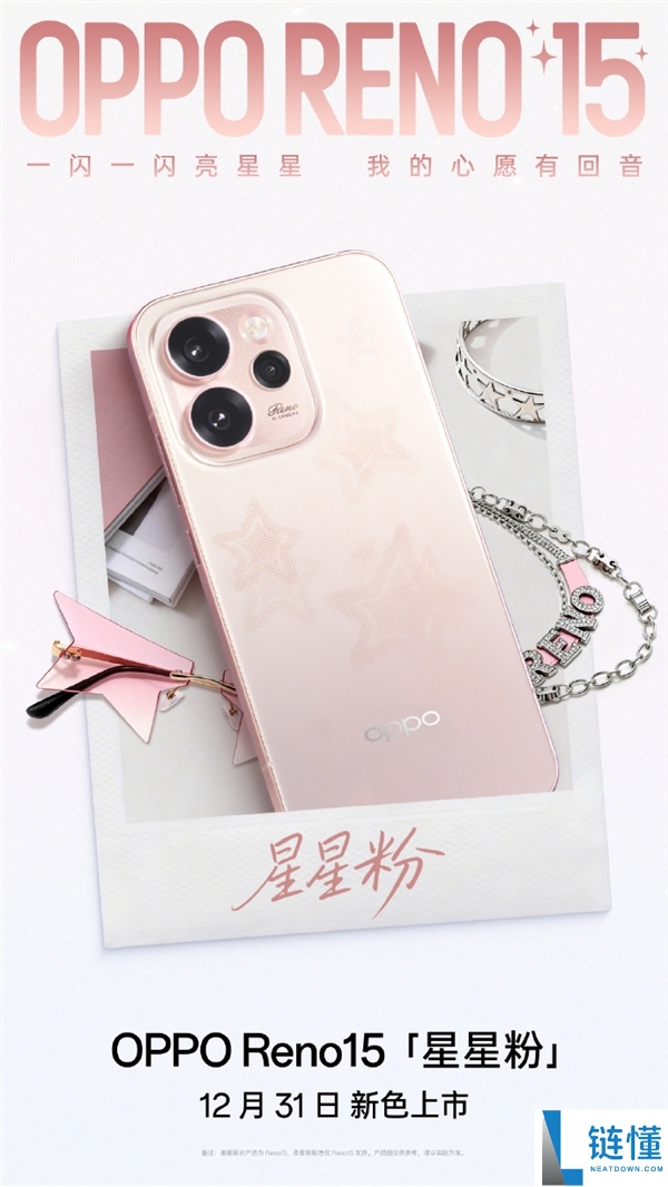 12月31日消息,今日,OPPO Reno15全新配色星星粉正式开售,售价2999元起。星星粉行业首发星闪光栅工艺,机身微转后星星也随之变幻。OPPO