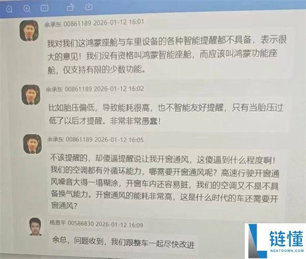 1月16日消息,昨晚一张余承东内部批评鸿蒙座舱的照片在网络上疯传,多名汽车博主争先恐后分享,甚至吸引了微博CEO来去之间的关注。从图片内