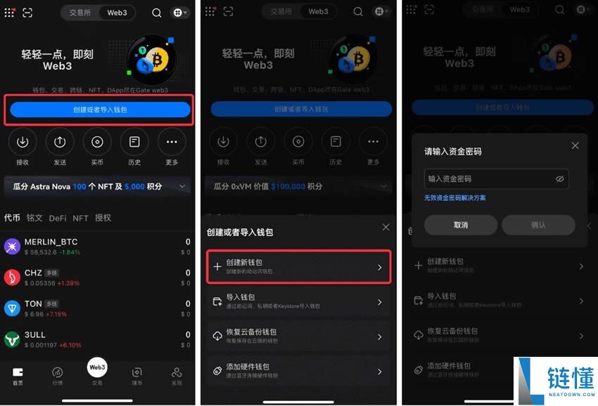 如何使用Gate Web3钱包的交易功能?(APP PC端步骤教程)APP端步骤教程第一步:创建或导入钱包点击界面上方【Web3】进入Web3后,未注册的下