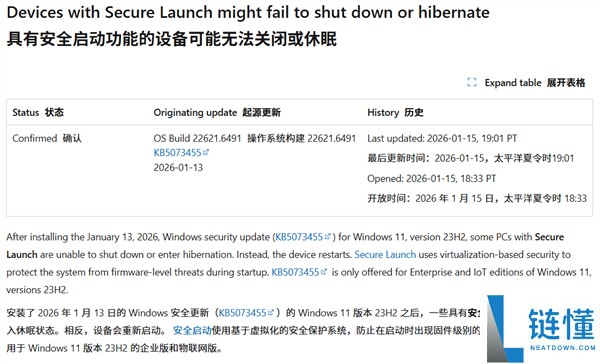 1月16日消息,微软在其官方网站中确认,部分设备安装了2026 年1月累积更新(KB5073455)后出现了一个Bug:部分设备在尝试关机或休眠时,会