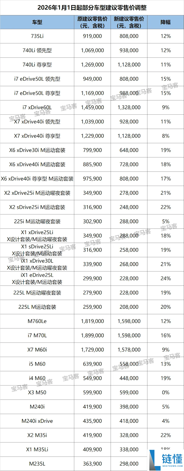 1月5日消息,近日,宝马中国30多款车全面降价一事,引起关注热议。宝马中国对旗下多款主力车型进行建议零售价调整,部分车型最高官降30余万