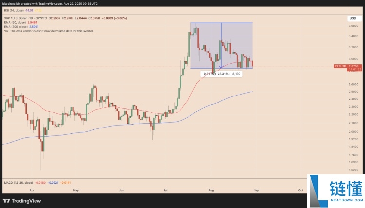 目录链上数据显示XRP价格崩溃风险XRP MACD形态暗示可能下跌25%瑞波币(XRP)在过去一个月下跌超过22 30%,此前在3 66美元附近触及高点,预