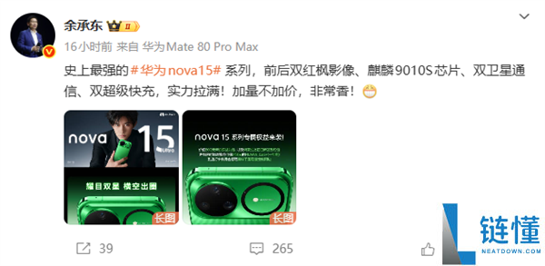 史上最强华为nova 15系列压轴退场 余承东:加量不加价 异常香